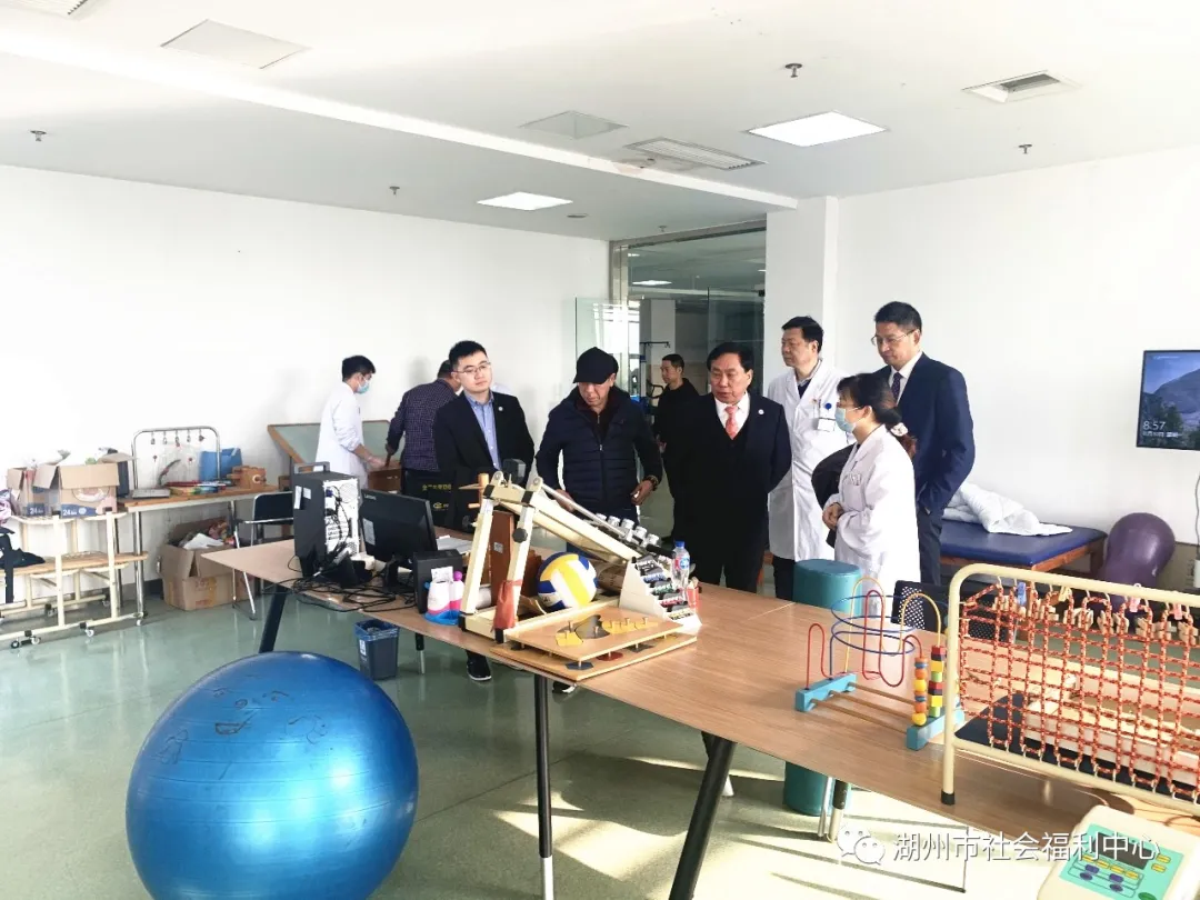 | 2020年11月30日,中國(guó)非公立醫(yī)療機(jī)構(gòu)協(xié)會(huì)會(huì)長(zhǎng)郝德明一行蒞臨福利中心考察指導(dǎo)工作,福利中心領(lǐng)導(dǎo)團(tuán)隊(duì)陪同考察。
