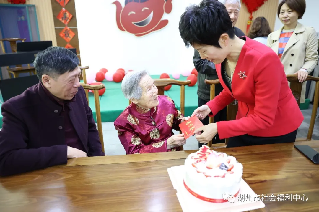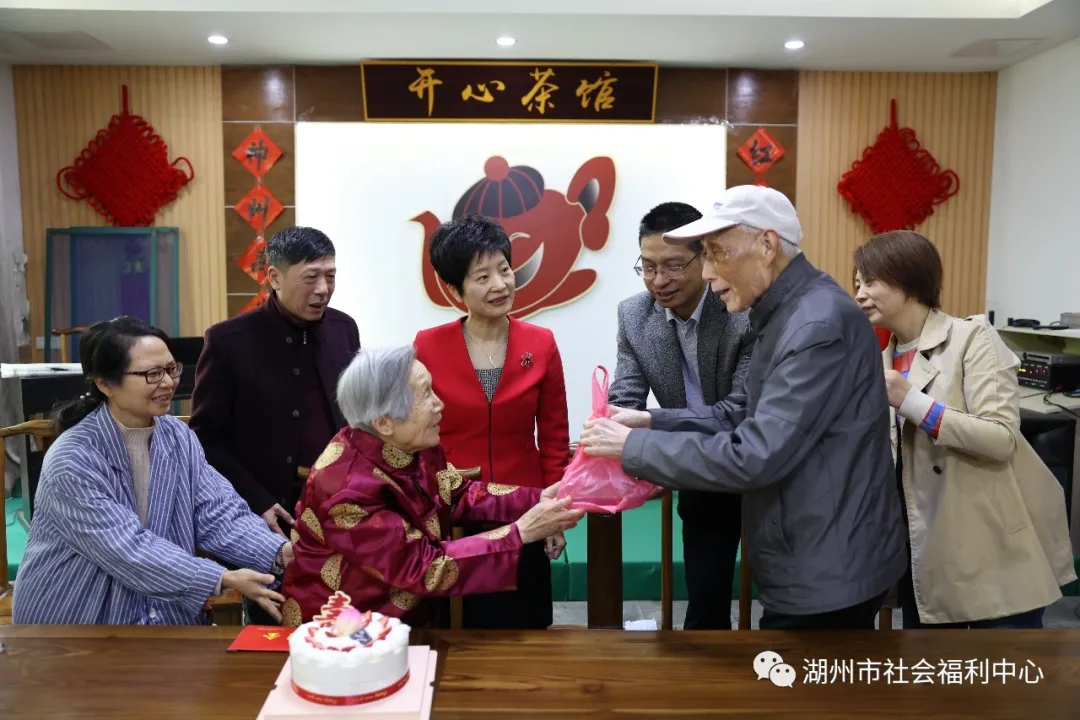| 4月6日上午,湖州市委老干部局和湖州市社會福利中心在開心茶館,為老人凌敏舉辦了百歲生日祝壽會。湖州市委老干部局局長夏冰、服務(wù)管理處處長劉慧,福利中心董事長徐俊揚、常務(wù)副總經(jīng)理袁永健、副總經(jīng)理王穎和中心離休老干部代表們參加了此次祝壽會。