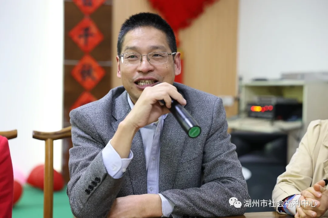福利中心常務(wù)副總袁永健代表中心領(lǐng)導(dǎo)給老人送上誠摯的生日祝福,他表示中心將全心全意打造舒適的休養(yǎng)環(huán)境,盡心盡力服務(wù)好每位老人。