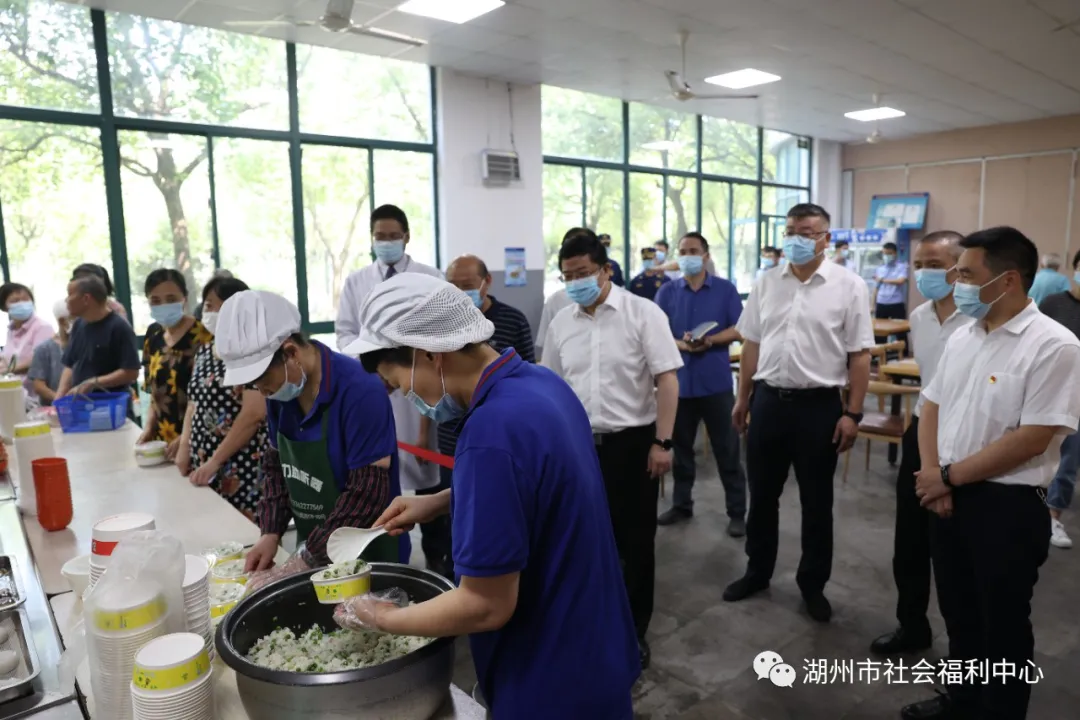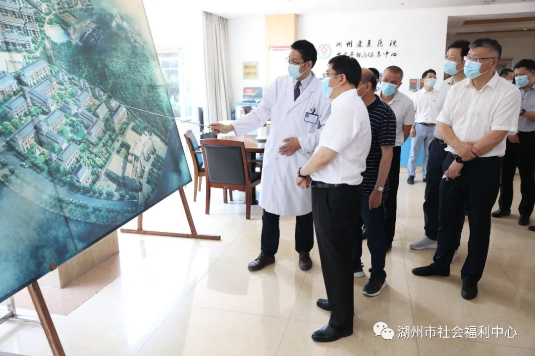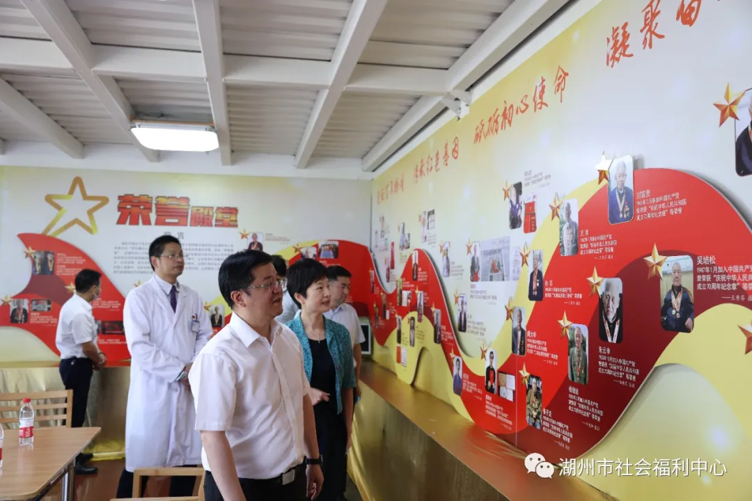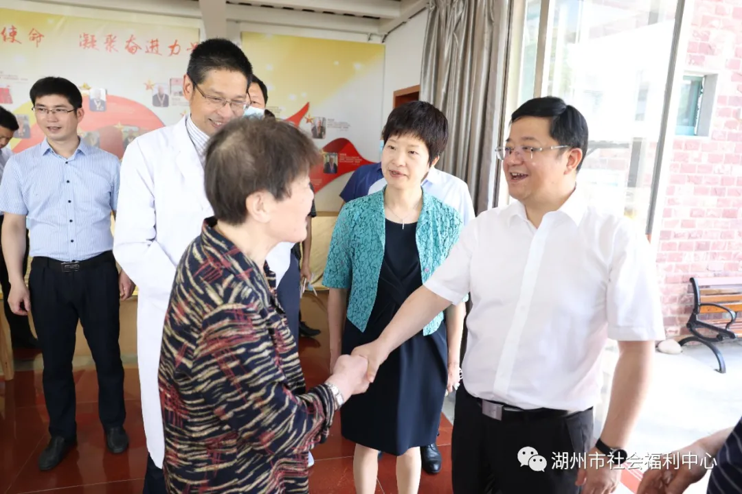 | 6月23日上午,湖州市委副書記夏文星一行蒞臨福利中心視察指導工作。福利中心常務副總經(jīng)理袁永健、副總經(jīng)理徐晨,湖州市養(yǎng)老協(xié)會會長、福利中心高級顧問徐國良等陪同視察。