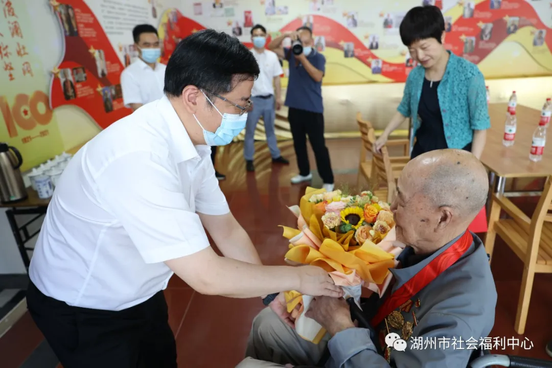 夏書記還親切慰問了百歲老人、離休老干部張振聲,為張老戴上了“光榮在黨50年”紀念章并送上鮮花,感謝張老對黨和國家做出的貢獻。