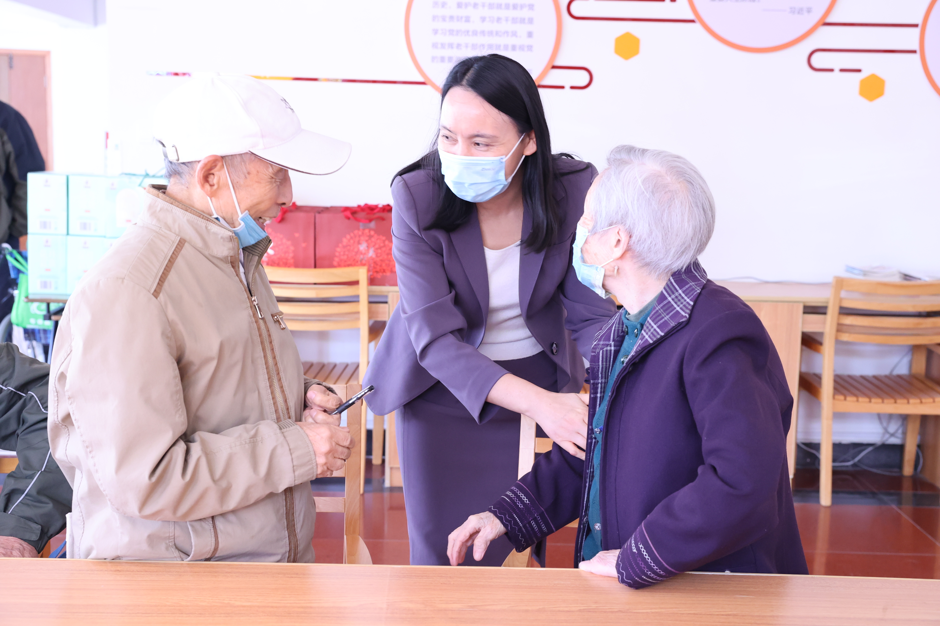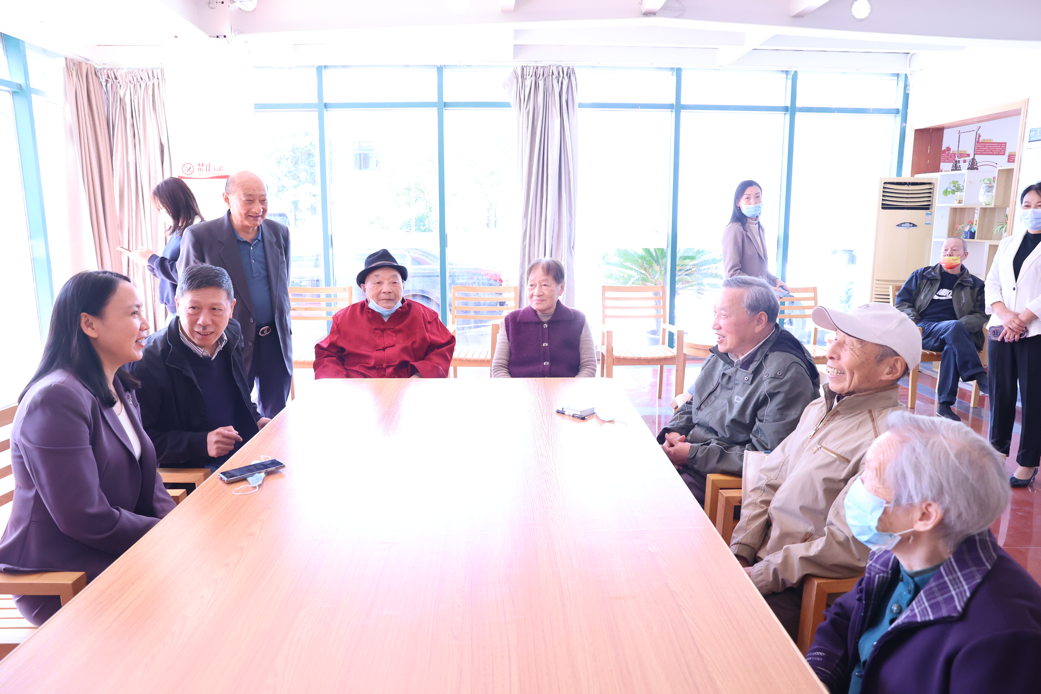 走過(guò)福利中心的“怡心小道”,阮副市長(zhǎng)一行來(lái)到福利中心的“樂(lè)活驛站”,看望在此活動(dòng)的康養(yǎng)長(zhǎng)者,并和他們進(jìn)行了座談。阮副市長(zhǎng)親切詢(xún)問(wèn)了康養(yǎng)長(zhǎng)者的健康和生活情況�?叼B(yǎng)長(zhǎng)者對(duì)黨和政府全方位關(guān)愛(ài)老年人表示感謝,對(duì)福利中心的環(huán)境設(shè)施、醫(yī)療服務(wù)非常滿意,認(rèn)為和在家里一樣,“只不過(guò)是換個(gè)地方養(yǎng)老”、“我在這里已住了九年了,非常舒服、非常適應(yīng)”。福利中心董事長(zhǎng)徐俊揚(yáng)向阮副市長(zhǎng)介紹了“70歲學(xué)畫(huà),100歲辦畫(huà)展”的老壽星凌敏、94歲的新四軍老干部馬淮平等康養(yǎng)長(zhǎng)者,“在福利中心康養(yǎng)的老年人平均年齡達(dá)八十六、七,已有四位百歲壽星”。馬老還向阮副市長(zhǎng)贈(zèng)送了自己的一幅書(shū)法作品,阮副市長(zhǎng)看到作品內(nèi)容后說(shuō)“寫(xiě)得真好,表達(dá)了一個(gè)老共產(chǎn)黨員的革命情懷,也是對(duì)我們的鼓勵(lì)和鞭策”。陪同走訪慰問(wèn)的湖州市衛(wèi)健委主任饒如鋒對(duì)百歲壽星凌敏說(shuō)“我們下次來(lái),希望能看到您的新作品”,他還邀請(qǐng)老干部在黨的二十大召開(kāi)后到基層單位進(jìn)行宣講。吳興區(qū)政府副區(qū)長(zhǎng)金斌斌、吳興區(qū)衛(wèi)健局局長(zhǎng)陸建兵也陪同阮副市長(zhǎng)到福利中心走訪慰問(wèn)康養(yǎng)長(zhǎng)者。